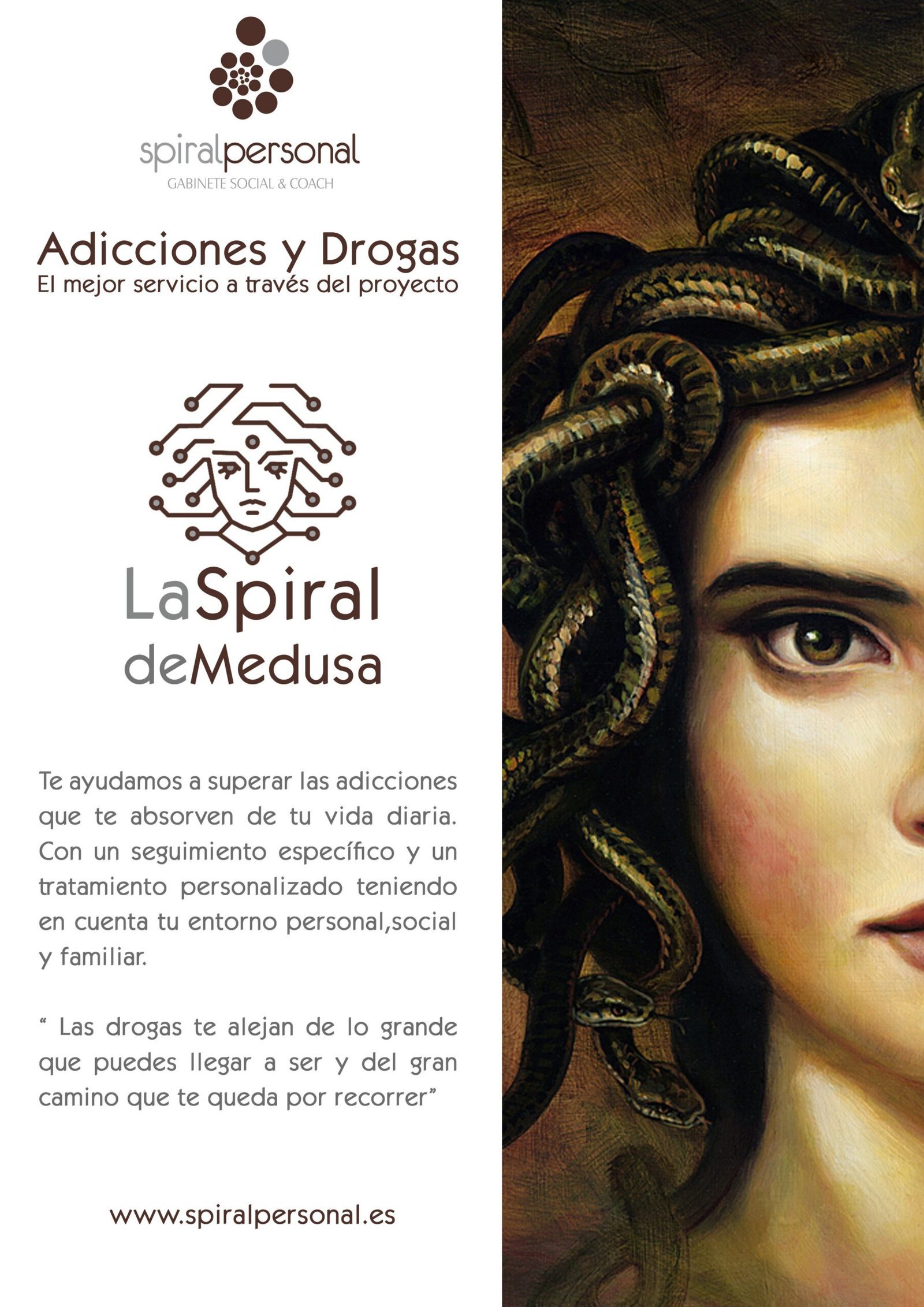 En Spiral Personal. Gabinete Social & Coach disponemos del mejor servicio, a través del proyecto “La Spiral de Medusa“, para que nuestros clientes superen las adicciones que les absorben de su vida diaria: